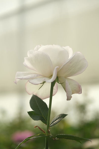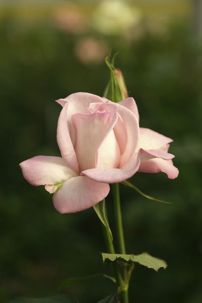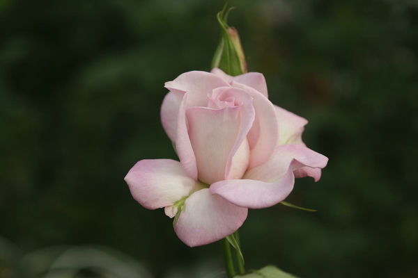 В бутоне у розы относительно небольшое количество лепестков. Его бледно‑розовые лепестки с градиентным рисунком изящно обрамлены фиолетовым, что придает цветку изящную объемную форму.